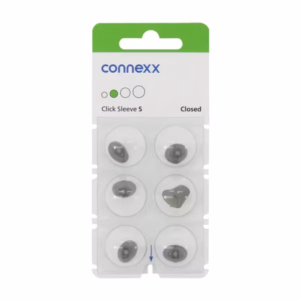 Den sklisikre funksjonen sørger for at høreapparatene sitter trygt på plass til enhver tid. Connexx Click Sleeves finnes i to versjoner: en lukket og en ventilert versjon.