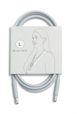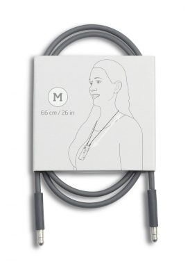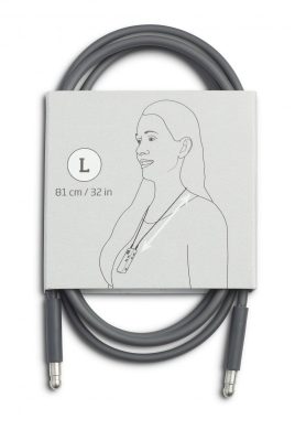 Halssnoren til Oticon Streamer Pro finnes i tre forskjellige lengder. Lengden avhenger av dine egne kroppsmål, men du skal også overveie hvilken høyde du ønsker å bære streameren. Den finnes i henholdsvis 51 cm (S), 66 cm (M) og 81 cm(L)