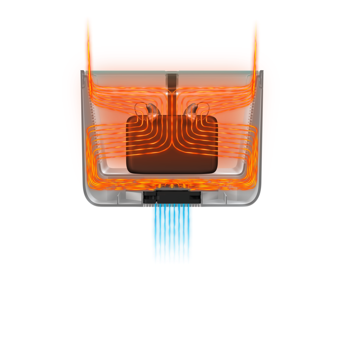 Tørkeprosessen er ganske rask. På 60 minutter er høreapparatene og laderne klare til bruk, og PerfectDome slår seg automatisk av når tørkingen er ferdig. Med automatisk avstenging kan du legge høreapparatene og laderne i boksen før du legger deg, og boksen vil tørke og desinfisere dem, slik at de er klare for neste dag. Med den korte tørkeprosessen kan du også bruke den mens du nyter kaffen etter en tur i kraftig regn, noe som gjør den ideell for tørking midt på dagen. Smart, enkel, rask og bærbar – en flott investering!