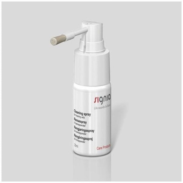 Signias rengjøringsspray er din løsning for å opprettholde rene og sunne ører. Den fjerner forsiktig voks og smuss, noe som gjør den til et viktig hjelpemiddel for de som sliter med ørevoks, svette eller støvete miljøer. Hvis du har for mye voks eller smuss i ørene, er denne øresprayen en sikker måte å fjerne overflødig ørevoks på. I tillegg gir den lindring fra potensielle irritasjoner i øregangen, som ofte er forbundet med bruk av høreapparater. Rengjøringssprayen er utstyrt med en ventil, diffusor og børste, og gir en problemfri brukeropplevelse. Regelmessig bruk av rengjøringssprayen for å løse opp oppsamlet ørevoks forlenger levetiden til høreapparatene dine.